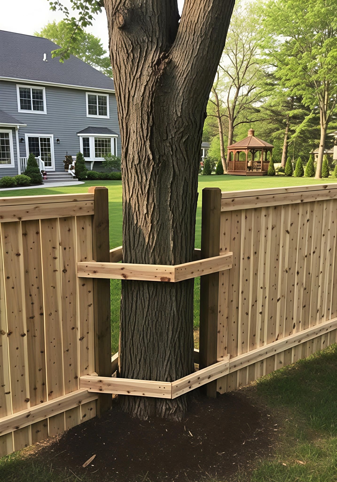 Carpenter apprentice here. The customer is upset that I routed the fence around a mature tree instead of cutting the tree down. They’re saying it “looks wrong” and “wasn’t what they expected,” even though this is standard, code-compliant practice when a tree sits on the property line. check in comment……