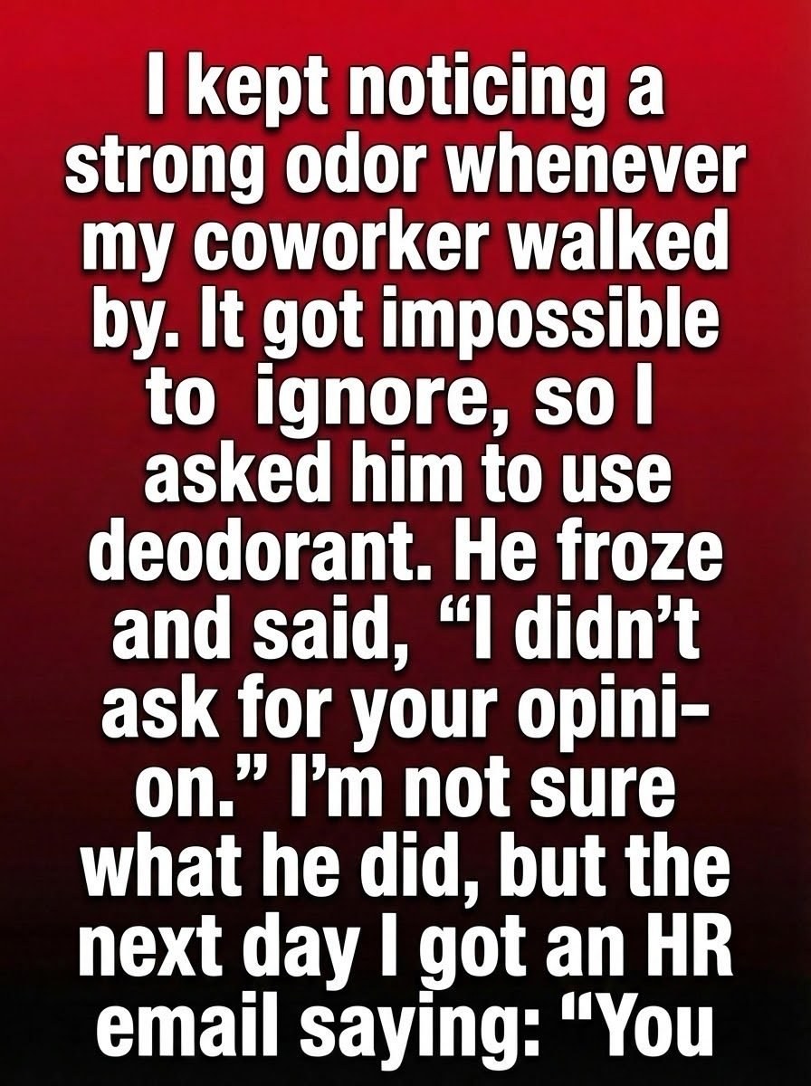 At first, I tried to ignore it. Offices are full of small discomforts—noisy keyboards, cold air vents, burnt coffee—and I told myself this was just another one. But as the days went on, the strong odor that followed my coworker through the hallway became impossible to overlook. It lingered in meeting rooms and hovered over shared desks, creating an unspoken tension no one wanted to address. I wrestled with whether to say anything at all, knowing how personal and sensitive such topics can be. Eventually, believing honesty was better than silent resentment, I spoke to him quietly and directly, trying to be respectful rather than critical.