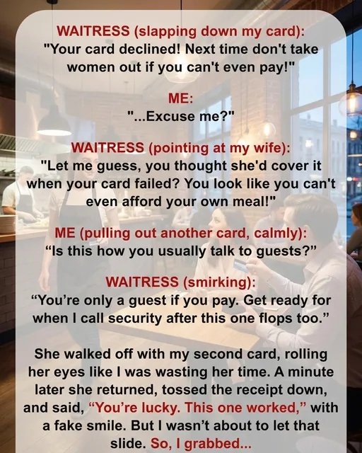 The evening was supposed to be simple and pleasant—a quiet dinner meant to celebrate time together. Instead, it turned tense the moment a payment issue occurred. What should have been handled discreetly became public and uncomfortable when the server responded with impatience and harsh assumptions. In situations like this, small moments reveal how easily respect can be replaced by judgment. A declined card, which can happen for countless harmless reasons, suddenly became the center of an unfair narrative that no one deserved to be part of.