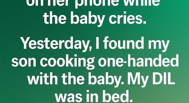 My son works hard. His wife’s a SAHM. Every time I visit, she’s on her phone while the baby cries. Yesterday, I found my son cooking one-handed with the baby. My DIL was in bed. I went to her room and said, “Must be nice to nap while my son raises your child.”The words tasted sharp even as I said them, but in the moment, frustration guided my tongue more than wisdom. My daughter-in-law looked up at me with red-rimmed eyes, startled but strangely resigned, as though she had already heard every possible criticism before. She didn’t argue or defend herself—she simply pulled the blankets closer and whispered, “I’m trying.” I left feeling oddly unsettled, carrying irritation on the surface but an uncomfortable heaviness underneath. Something about the whole situation didn’t add up, but I pushed the thought away.