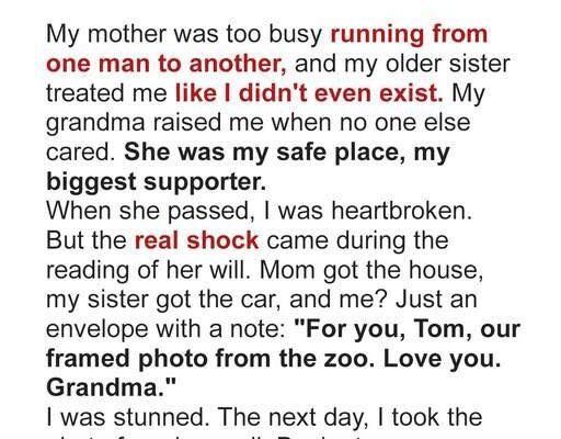 When my grandmother Grace passed, my mother and sister claimed the house and car. I received only a small parcel — a photo of Grandma and me at the zoo. No keys, no note, just a cracked frame and a fading memory. Humiliation stung as I held it, wondering if that was all I meant to her.