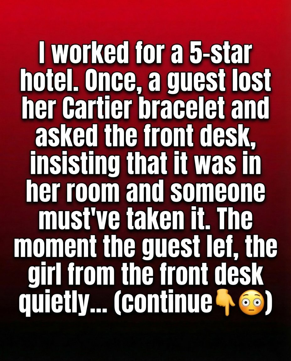 Lena had always loved working at the front desk of the grand Meridian Hotel. The marble floors gleamed under crystal chandeliers, and every guest expected perfection. One evening, a woman rushed toward the desk, visibly upset. She explained that she had lost her Cartier bracelet and was certain it had been left in her room. Her voice trembled as she insisted that someone must have taken it. Lena listened carefully, keeping her expression calm and professional while assuring the guest that the hotel would investigate immediately. Security was alerted, housekeeping was questioned, and records were reviewed, but no trace of the bracelet appeared. The guest eventually left, frustrated and suspicious, promising to contact management the next day.