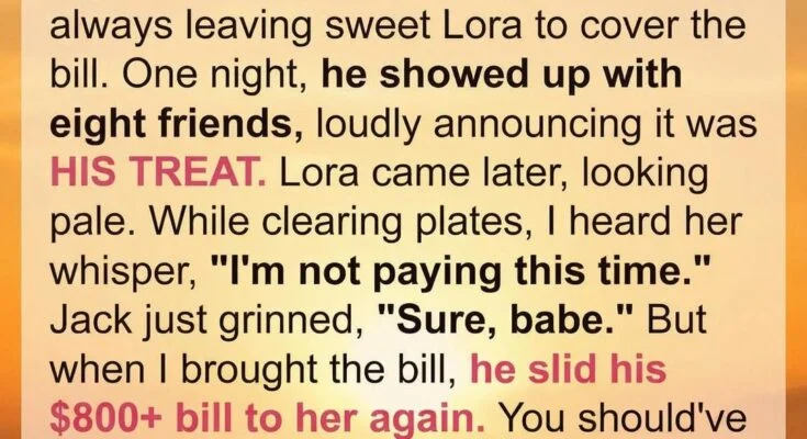 One evening, Jack arrived first with a group of friends, loudly announcing that dinner was “on him.” The table buzzed with confidence and ease. When Lora arrived later, her presence shifted the mood. She looked worn down, distracted, as though the evening had already taken something from her. As I cleared plates, I overheard her quietly say she wasn’t paying this time. Jack smiled and brushed it off with casual reassurance. But when the check arrived, he slid it back toward her, just as he had done before. The total was high, and her expression—caught between surprise and resignation—lingered with me long after I stepped away.