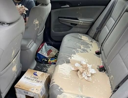 Turns out it wasn’t a normal package at all, just some container filled with the most disgusting liquid imaginable. Now my seats are soaked, it’s seeping into the floor mats, and the smell is so bad I can barely sit inside for more than a few seconds.