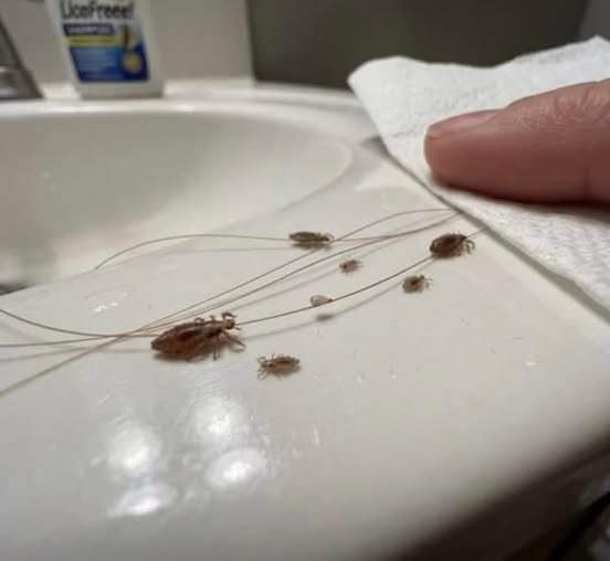 into the sink. At first I thought it was just dust or something from her hair. Then I looked closer and saw them moving. Actual lice crawling around in the sink.
