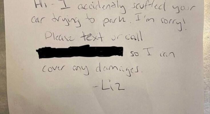 So let me get this straight. It’s apparently acceptable now to hit someone’s car, scribble a quick note, stick it on the windshield, and walk away like that somehow fixes everything? That’s the standard now?