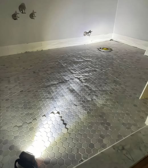 “My bathroom was just retiled… But every tile sheet is lifting. The installer says it’s normal—does it look normal to you? 👇”