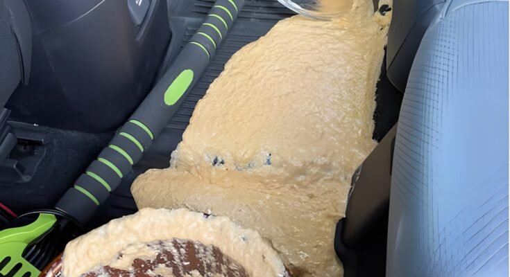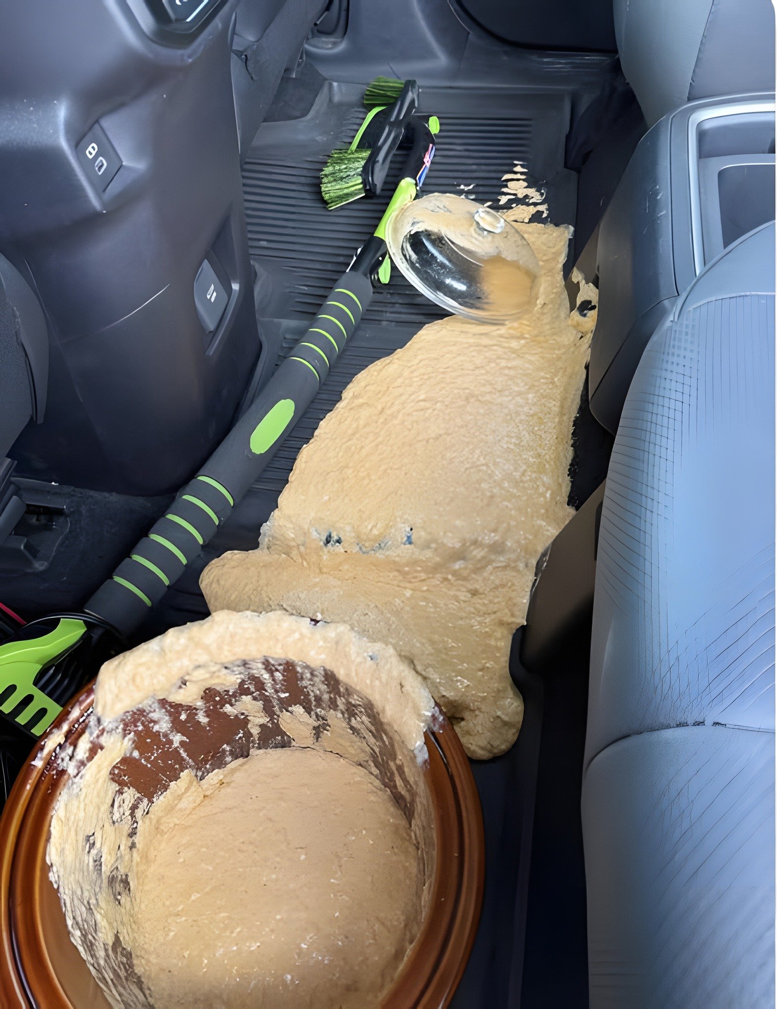 I went to pick up my mom so we could have dinner and start our Christmas plans at my place, and she brought a dish with her and told my 7 year old son to put it in the backseat. While he was trying to place it carefully, it slipped right out of his hands. Moments later he ran over to me upset, saying it spilled, and when I opened the car door the container was flipped over, emptied, and spread all across the backseat.