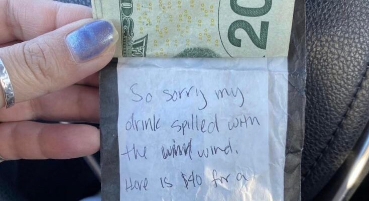 “Close call on the road today—drink hits windshield, driver thinks $40 is enough 😡 Read the full story in the comments 👇”