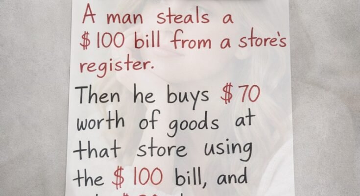• A man steals a $100 bill from a store’s register.