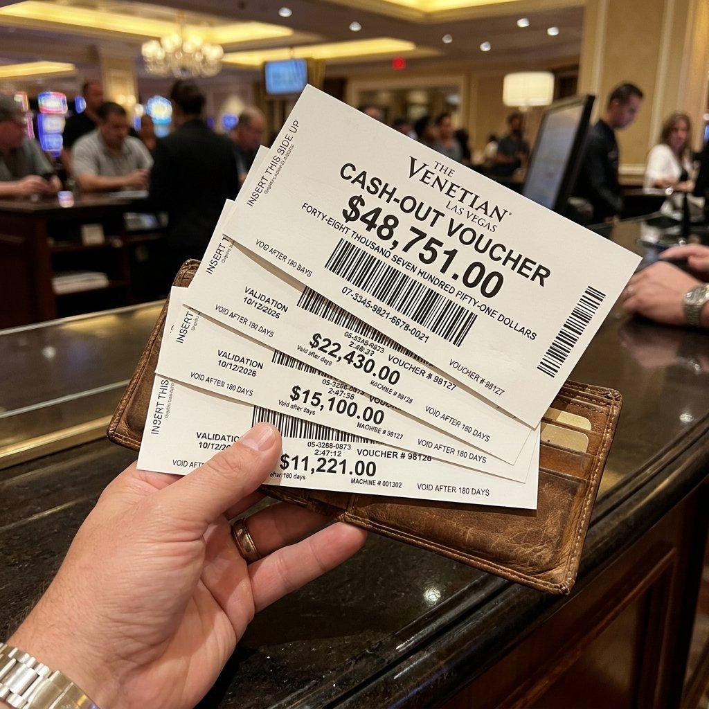Next thing I know, he’s pulling out a stack of cash-out tickets like he’s been hiding them the whole time. Not small amounts either, I’m talking numbers that don’t even make sense to casually hold in your hand.