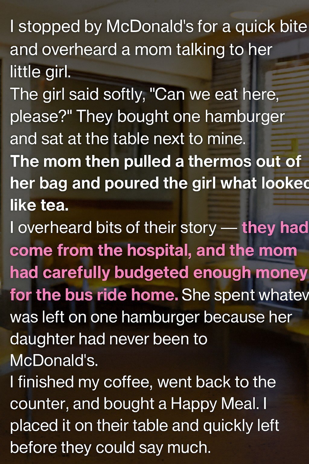 I walked back to the counter, almost instinctively. Lowering my voice, I asked the cashier if they could add a Happy Meal to the woman’s order—quietly and anonymously.
