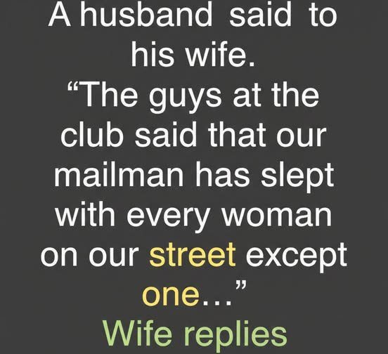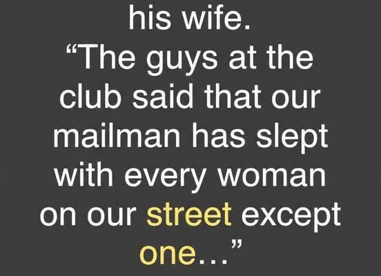 “You won’t believe what the guys were saying today,” he began. “Apparently, our mailman has slept with every woman on this street… except one.” His tone was teasing, as if he couldn’t wait for her reaction.