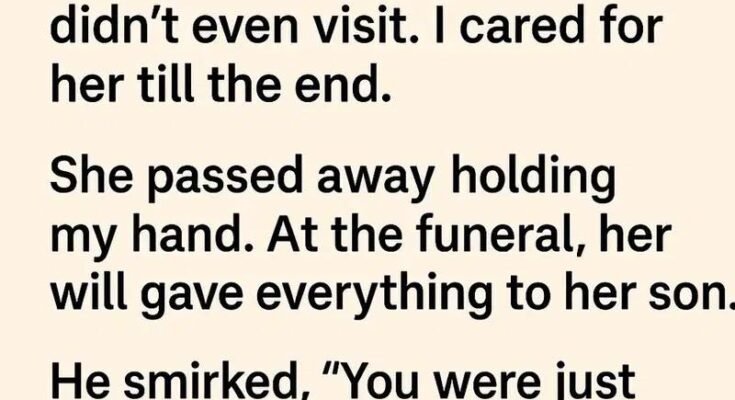 As he described the contents of the letter, the picture began to emerge in subtle, careful strokes. She had written with gentleness, acknowledging the small acts of care I had offered during the final months of her illness—the quiet companionship when the house felt empty, the patience in listening to her restless thoughts, the calmness in responding to moments of fear or discomfort. Her message was infused with gratitude for these unremarkable yet profoundly meaningful gestures. She could not, she explained, alter her will without stirring familial conflict, and yet she wished to convey to me that the true value of care lies not in material inheritance but in attention, patience, and kindness extended to another human being. The uneven but steady handwriting bore her unmistakable mark, an echo of the person she had been and the life she had lived with quiet dignity. Beneath the letter, however, her son had discovered something more—a collection of old receipts, scattered notes, and photographs. These remnants suggested plans she had entertained but never realized: the creation of a small trust intended for him. These were intentions left unfinished, hints of reconciliation and care that she had hoped to cultivate but had not brought to completion.