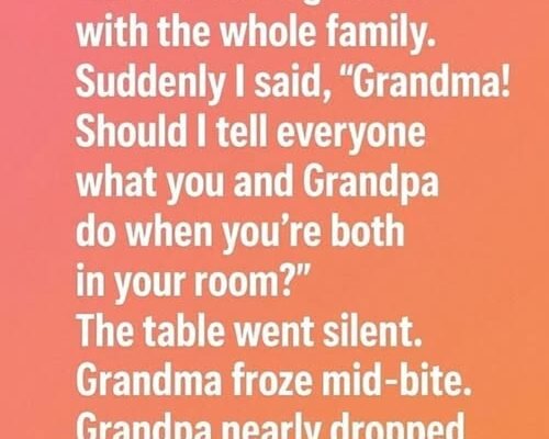 One of the most memorable moments our family ever shared started with a simple question from a six-year-old at a dinner table filled with relatives. It was a typical family gathering, filled with the sounds of laughter, conversation, and the aroma of home-cooked food. The atmosphere was warm, inviting, and easy, with everyone enjoying each other’s company. But when I, without understanding the weight of the moment, blurted out a question about my grandparents’ private activities, everything changed. “Grandma! Should I tell everyone what you and Grandpa do when you’re both in your room?” I asked, interrupting the flow of the conversation. The room fell silent in an instant. It was as if time had stopped, and everyone turned to me with wide eyes. I had no idea what kind of tension I had just created. To me, I was just about to share something interesting I had witnessed. The adults, however, exchanged nervous glances, unsure how to react.