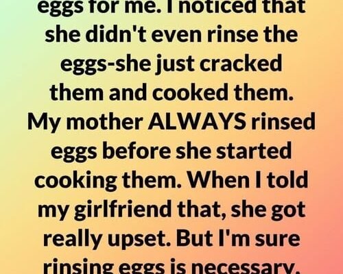 “Did you wash the eggs first?” he asked casually. “My mom used to do that before cracking them.”