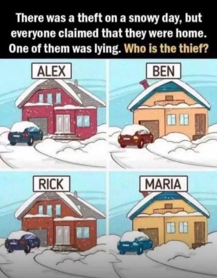 UncategorizedOne of them was lying. Who is the thief? April 7, 2026 - by Admin - Leave a Comment One of them was lying. Who is the thief? B C Answer: The answer is Rick. Views:2,517