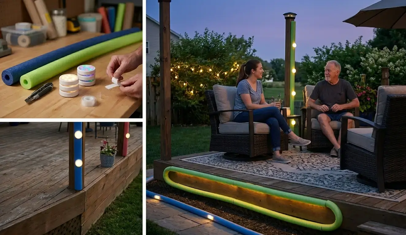 You can change the whole feeling of your backyard at night with something as random as a pool noodle. It sounds a bit weird at first, I know. But once you add lights to it, it actually looks really nice. That basic summer thing you probably forgot about can turn into something that makes you want to stay outside longer, just talking and enjoying the evening. It is one of those small ideas that ends up doing more than you expect.