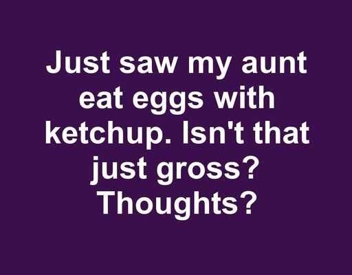 “Caught my aunt adding ketchup to her eggs. Yikes! What do you think?”