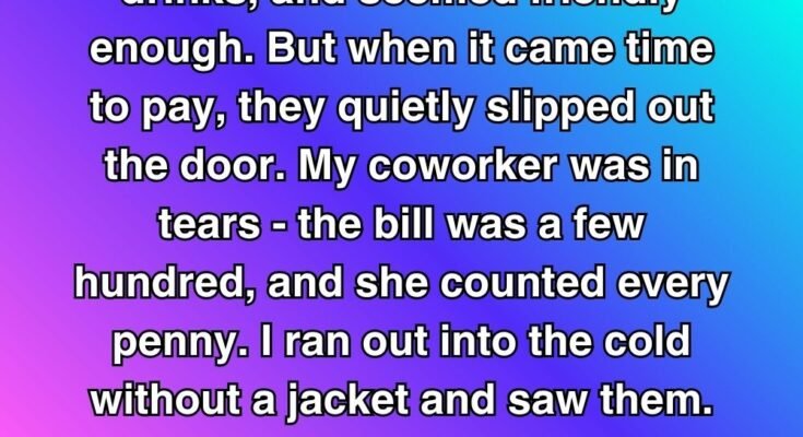 Two men walked into our small café one chilly evening, ordered generously, and chatted warmly with us as if we were old friends. They enjoyed their meal, laughed loudly, and didn’t seem in a rush. But when it was time to pay, they quietly slipped out the door without a word. My coworker, Mia, was on the verge of tears; the bill was well over a hundred dollars, and we both relied on every shift to make ends meet. Without thinking, I rushed outside into the cold, still wearing my apron.