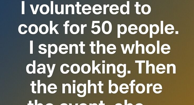 I politely asked why I was suddenly uninvited, and she vaguely mentioned “space limitations.” It stung. I wasn’t expecting a grand thank-you, but being asked to cook for dozens of people and then being removed from the guest list felt deeply disrespectful. Still, I took a moment to breathe and stay calm — I didn’t want to react emotionally. I simply replied that I wouldn’t be able to provide the food if I wasn’t attending.