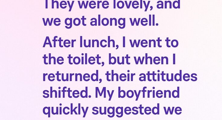 I was meeting my boyfriend’s parents for the first time. They were lovely, and we got along well. After lunch, I went to the restroom, and when I returned, their warm attitude suddenly felt colder. My boyfriend immediately suggested we leave. As soon as we got into the car, he blurted out, “You could’ve at least warned me!” Shocked and confused, I realized he thought something about me had upset them — and apparently, he assumed it was my fault.