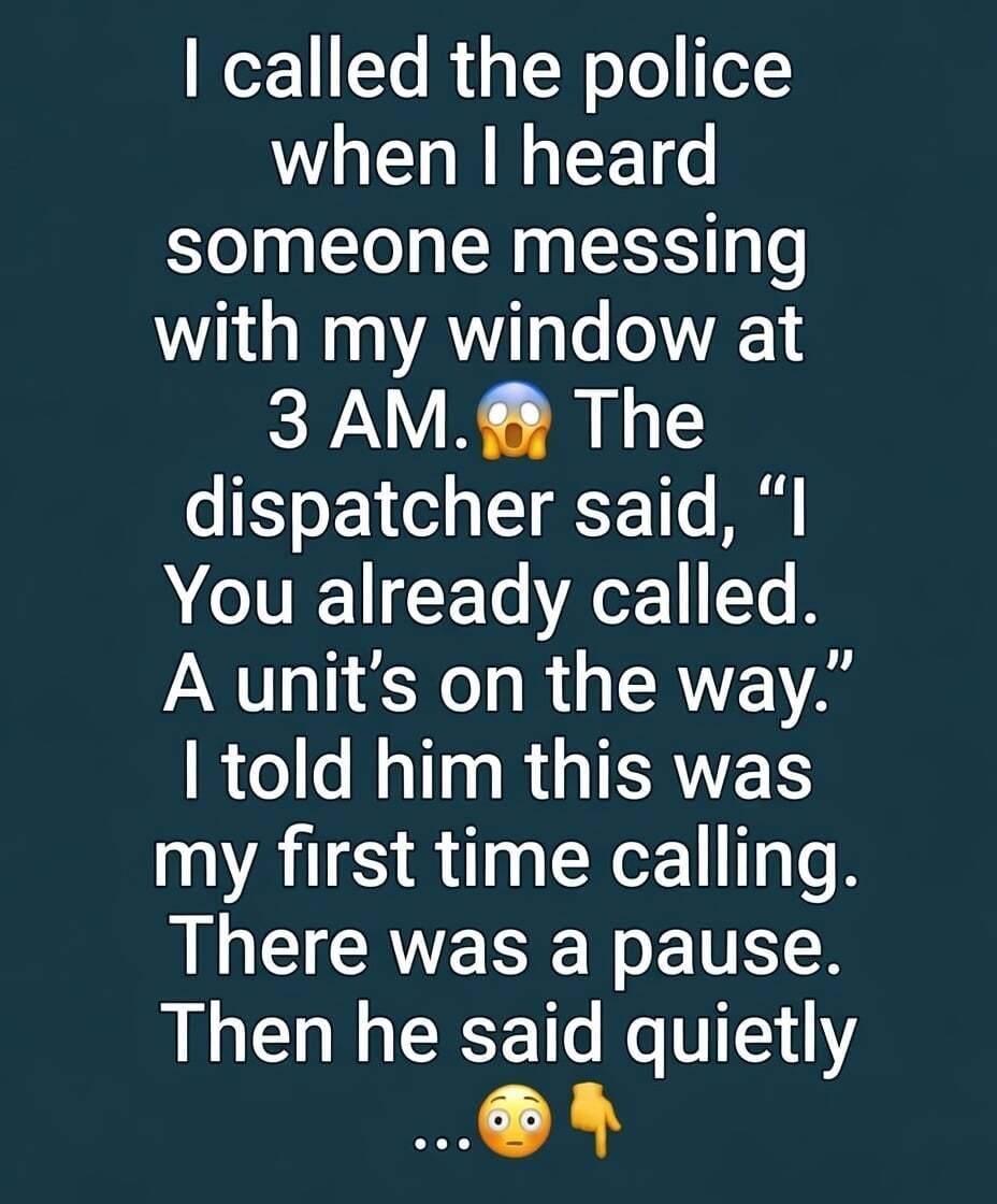 When the officers finally arrived, everything changed again. They searched the outside, checked the windows, looked around the house. What they found wasn’t what I expected—but it was enough to explain everything. There were marks near the window… and signs that someone had been there earlier. Watching. Waiting. And somehow, that earlier call had come from a nearby line—someone trying to report movement before disappearing from the area. I wasn’t alone that night. I was just the one who realized it too late.