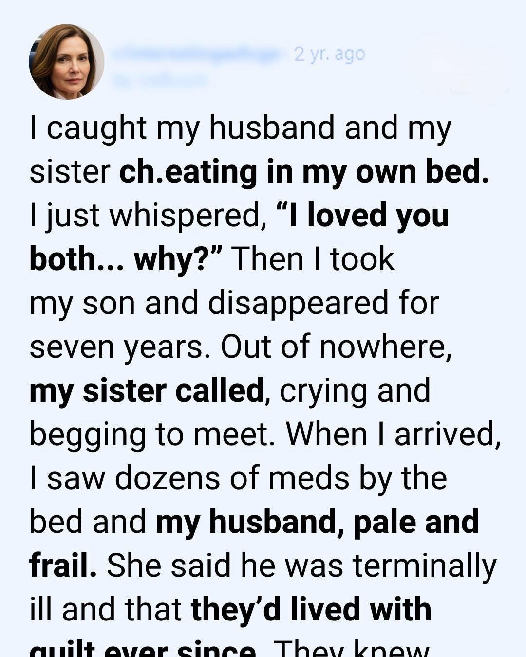 My husband looked like a man already slipping away. Illness had stripped him of strength and certainty, leaving behind someone fragile and unfamiliar. My sister sat nearby, folded inward, her face marked by shame and exhaustion. The room itself seemed to hold regret. There were no excuses, no pleas for forgiveness—only the unspoken understanding that this was the cost of what they had done.