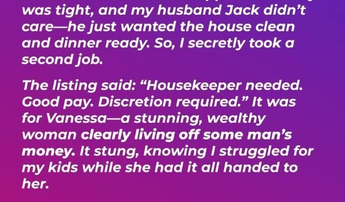 I never imagined that taking a second job would lead me to the doorstep of my husband’s betrayal. But when I knocked over a photo at Vanessa’s house, it made me realize the glamorous, wealthy woman wasn’t just my employer. She was the reason my marriage was falling apart.