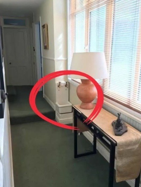 Then you spot something unexpected: a small sink mounted on the wall right in the hallway.