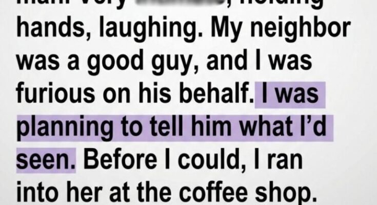 By the time I stepped into the cold night air, I felt compelled to intervene, certain I had uncovered a betrayal and needed to spare someone pain. The scene replayed in my thoughts for days. I thought of her husband, Mark—the neighbor everyone admires for his kindness, his reliability, the way he makes people feel noticed. I told myself that speaking up was the honest thing to do, that staying quiet would make me part of the wrongdoing. My confidence grew fast, built entirely on assumption.
