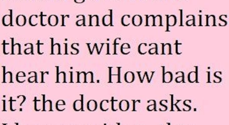 A man goes to the doctor and complains that his wife can’t hear him. “How bad is it?” the doctor asks. “I have no idea.” the husband says.