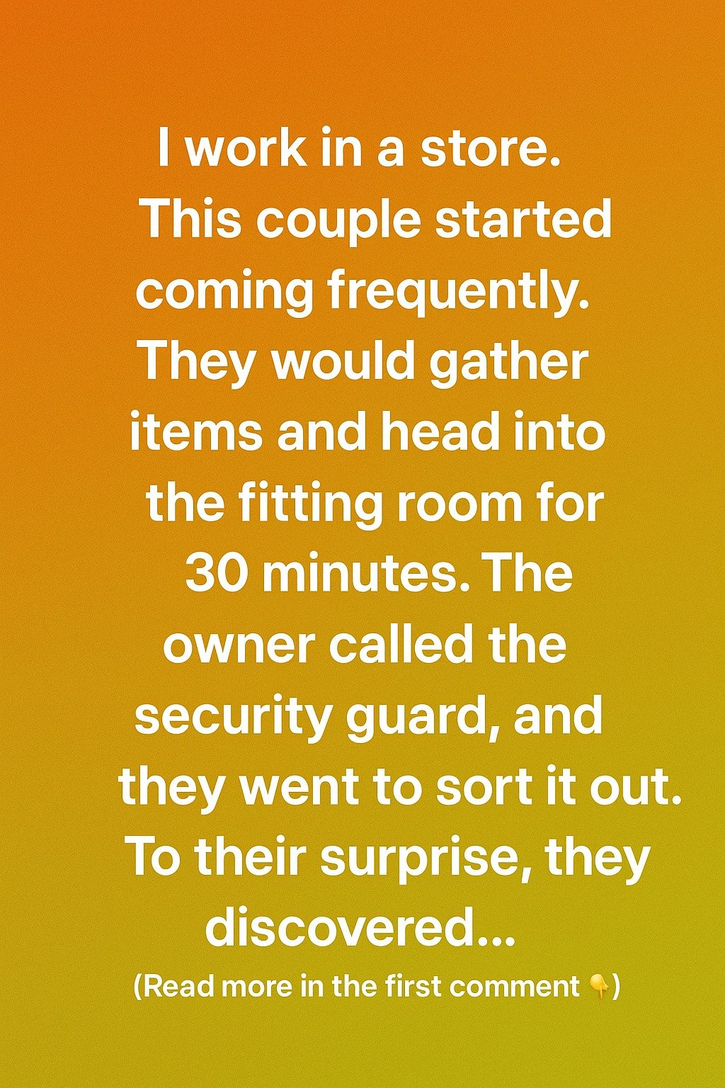 I work in a small clothing store tucked inside a quiet shopping plaza. A few months ago, a couple started coming in every week. They’d browse together, pick out a few things, and then spend nearly half an hour in the fitting room. At first, it just seemed odd. Most customers didn’t take that long, and the owner started to get suspicious.