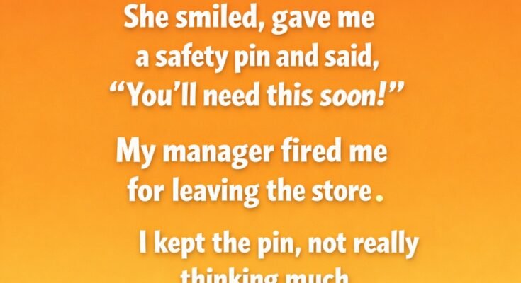 The day it happened felt ordinary until it suddenly wasn’t. I was working a long shift when I noticed a pregnant woman collapse just outside the store entrance. Instinct took over before fear or rules could catch up. I ran to her with a bottle of water, helped her sit up, and stayed until her breathing steadied. She smiled with a calm that surprised me, thanked me softly, and pressed a small safety pin into my palm. “You’ll need this soon,” she said, almost playfully. I didn’t understand what she meant, but I nodded anyway, relieved to see her standing again and walking away safely.